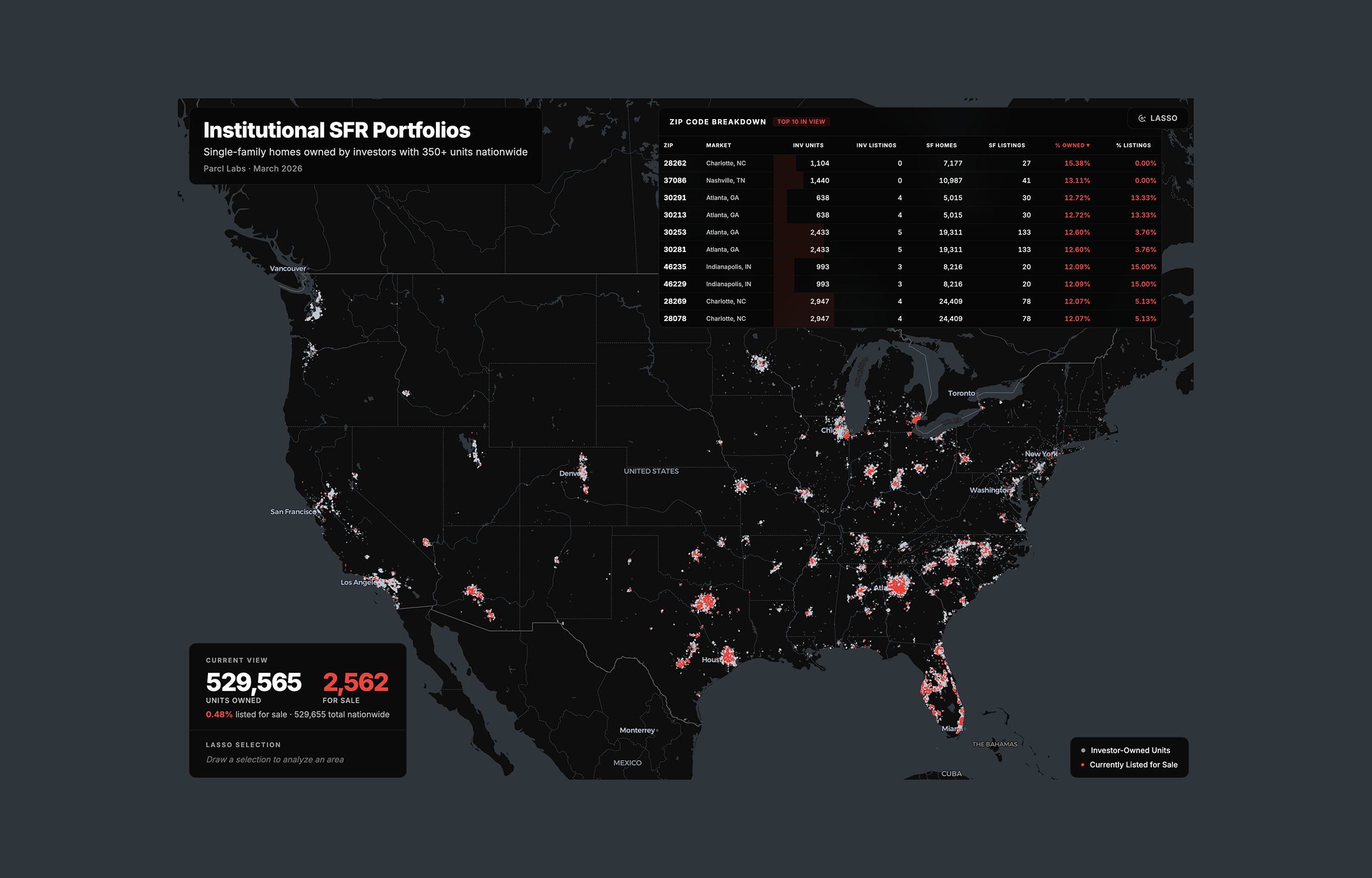 Unfortunately for the anti-investor advocates, “the math isn’t mathing” in the actual market. Multiple market examinations, including one from housing investment research group Parcl, show investors in the 350-unit-plus group own a total of roughly 530,000 single-family homes in the U.S., just 0.59% of the overall market. In a few highly targeted markets, such as Atlanta, that percentage ranges as high as 4%.