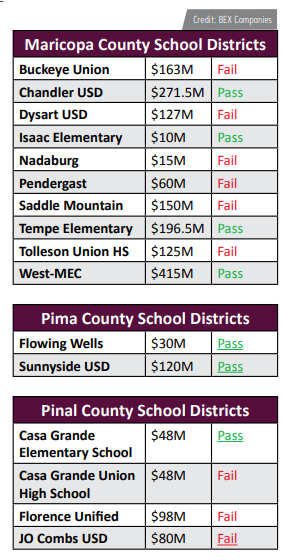Across Arizona, voters were asked to support local school districts with their facilities needs via bond questions at the ballot. The results were split.