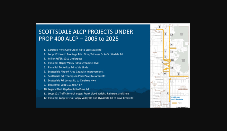 - $19.4M: Widen Pinnacle Peak Road from Scottsdale Road to Pima Road;