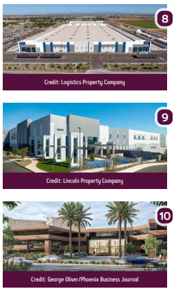 9. A global third-party logistics provider signed a 629.8KSF full-building lease for Building A at Park303 in Glendale, bringing the 3.8MSF industrial development to full occupancy. The tenant was represented by Marc Hertzberg, Kelly Royle, Charlotte Elstob and Dan McGillicuddy of JLL. Lincoln Property Company is the developer, property manager and leasing agent for the project, which is located along Loop 303 at Glendale Avenue.