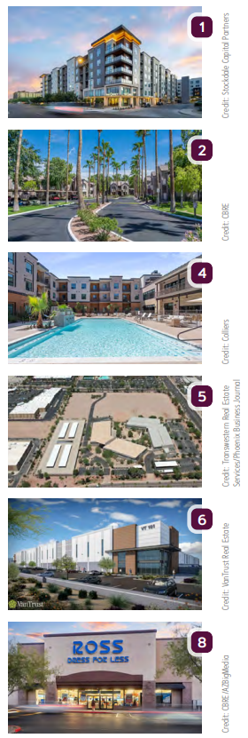 5. Widewaters sold a 189KSF office complex at 8530-8550 S. Priest Dr. in Tempe for $27M. Maricopa County Community College District purchased the two-building asset and will use it as its new headquarters. Widewaters was represented by Transwestern Real Estate Services’ Paul Borgesen, Dylan Sproul, Bill Zurek, Jim Achen Jr. and Royden Hudnall. MCCCD was represented by CBRE’s David Barrett.