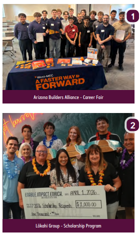 1. The Arizona Builders Alliance hosted a career fair at its SkySong office, connecting West-MEC electrical program graduates with seven construction companies: Rosendin, TDIndustries, Kearney Electric, Quantum Industrial, Rural Electric, Wilson Electrical and Berg Electric. The event featured speed interviews and resulted in immediate job offers.