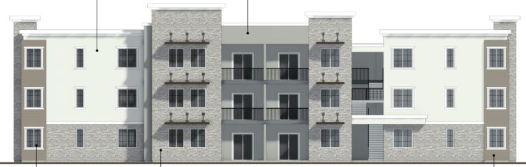 Plans submitted by developer BFH Holdings LLC call for six three-story buildings and a central amenity area. The townhouse-style units will also have two-car garages and a five-foot private backyard or patio. (Source)