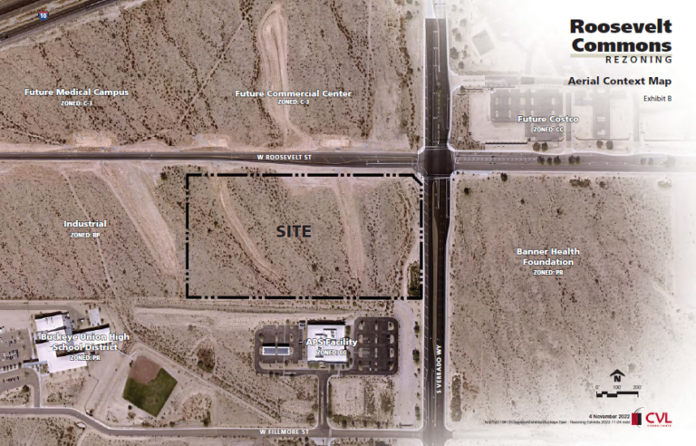 Developer Geddes Capital Resources, LLC is proposing Roosevelt Commons – a new master planned project on a 15.6-acre site at the SEC of Verrado Way and Roosevelt Street in Buckeye.
