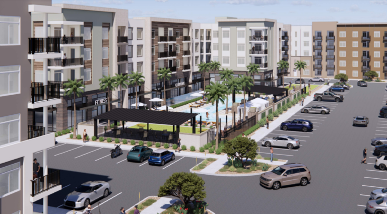 Plans call for five residential buildings, two pools and two fitness centers and clubhouses.