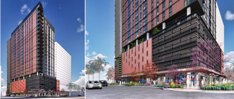 In 2008 a PAD overlay – the M7 Mixed-Use Development Plan – was approved to allow a 26-story residential tower of up to 306 feet in height with up to 370 units. Core Spaces’ requested amendment would reduce the PAD by 101 units and approximately 66 feet. A second residential tower and a hotel were originally planned but never built.