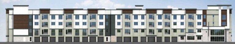 The plan calls for two four-story buildings. The submitted unit mix shows 36 studios, 74 one-bedroom, 106 two-bedroom and nine three-bedroom units. Sizes will range from 562SF for the studios up to 1,408SF for the three-bedroom units. Planned amenities include an open space courtyard with outdoor seating at the southern building and a 9KSF clubhouse, pool area and open space at the northern.