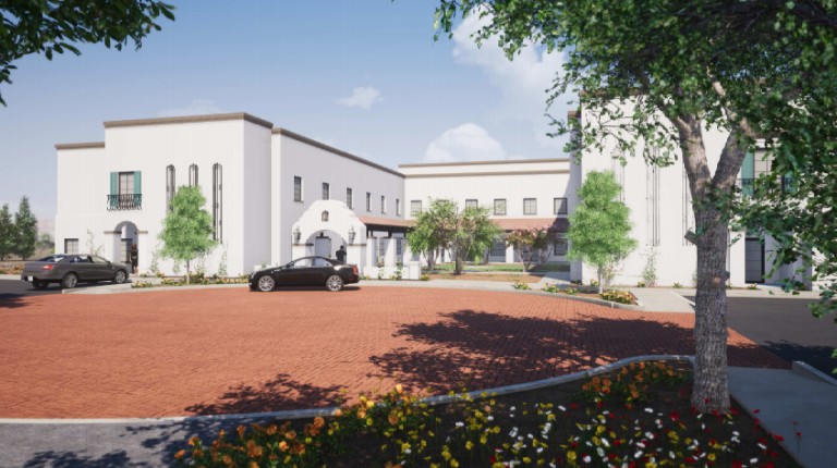 According to the project overview, “The proposed development site is to be completed in a single phase and includes numerous common amenities available to patients, including outdoor garden spaces, activity rooms, barber/beauty salon, coffee and snack bar, quiet rooms, and indoor and outdoor dining spaces. The facility will be designed in Arizona Mission style architecture including key features such as white stucco walls with tan trim, flat roofing, curvilinear gables, covered canopies with colonnades, arched entryways and windows, vertical metal lattice elements, shutters with wrought iron balconies, and clay roof tiles.”