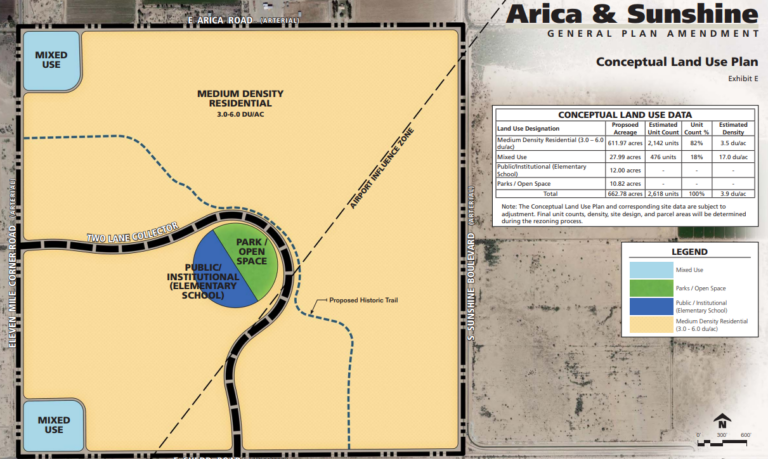 Landowners the Barnes Family have submitted a proposal to the City of Eloy to develop a master-planned community with a mix of uses southwest of Arica Road and Sunshine Blvd.