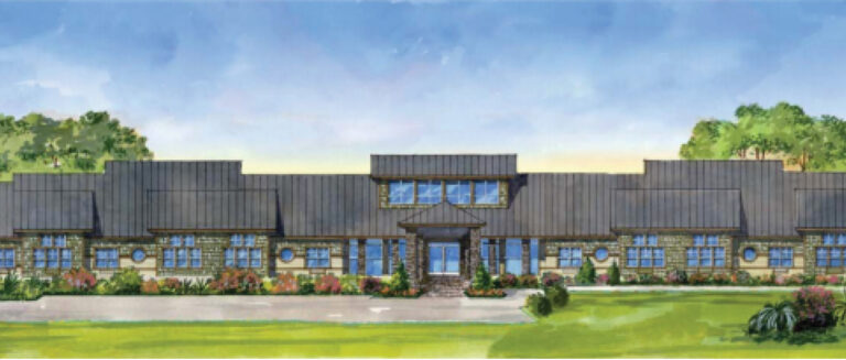 The center’s design is “comprised of four wings each acting as a small neighborhood,” with common areas and landscaped courtyards. Amenities include, “…dining spaces and service areas for shared meals, fire side lounge, fitness and activity center, spa, beauty salon/barber shop, private dining for family events and a central kitchen for chef-inspired meals.”