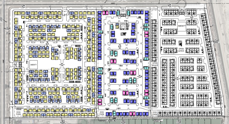 Hancock on Rooks will consist of 327 Build-to-Rent, 288 quadplex and 232 townhome units. The BTR portion covers 33.2 acres on the south side of the property and will feature one- and two-bedroom floorplans.