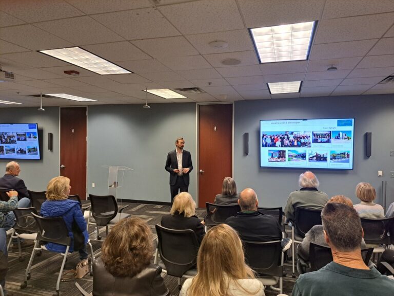 Caliber Companies’ Chris Loeffler presenting the updated plan for Mercado Village. Credit: J. Graber/Independent Newsmedia