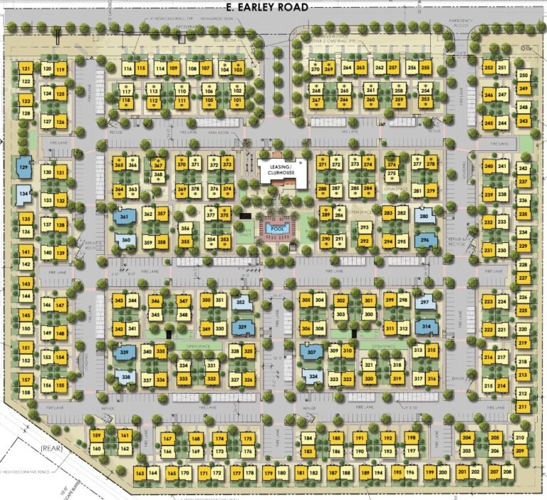 The submittal prepared by iPlan Consulting details Dominium’s plan for 278 duplex units on a 25-acre property near the SWC of Peart and Earley roads. The location is within the 107-acre Peartly Point Planned Area Development approved earlier this year. Peartly Point includes areas for residential, commercial and industrial uses, according to the submitted narrative.