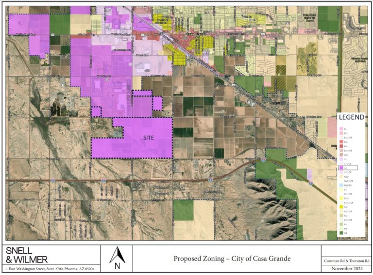 “The third request is a zone change and is also in conjunction with a proposed annexation. This request is from Urban Ranch (UR) to Community Services (B-4) for +/-110 acres, generally located near the northeast corner of Interstate 8 (I-8) and Thornton Road.”