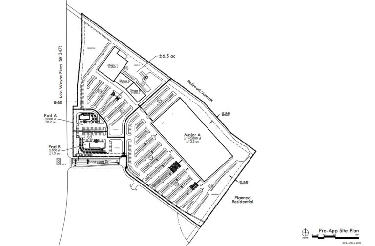 The parcel is located at John Wayne Pkwy, south of the Amtrak Railroad and was recently part of a larger effort by the city to rezone the area from rural and industrial to commercial and mixed-use.