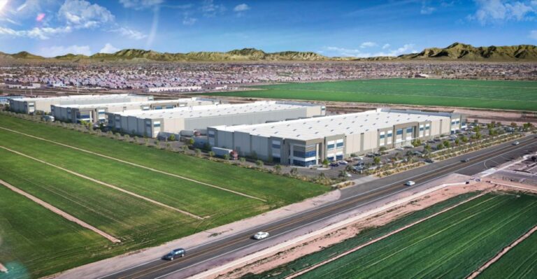 Plans feature loading docks at the rear of each building. Pedestrian connections and employee amenities, including uses of the adjacent Roosevelt Water Conservation District Canal, are cited as features. (Source)