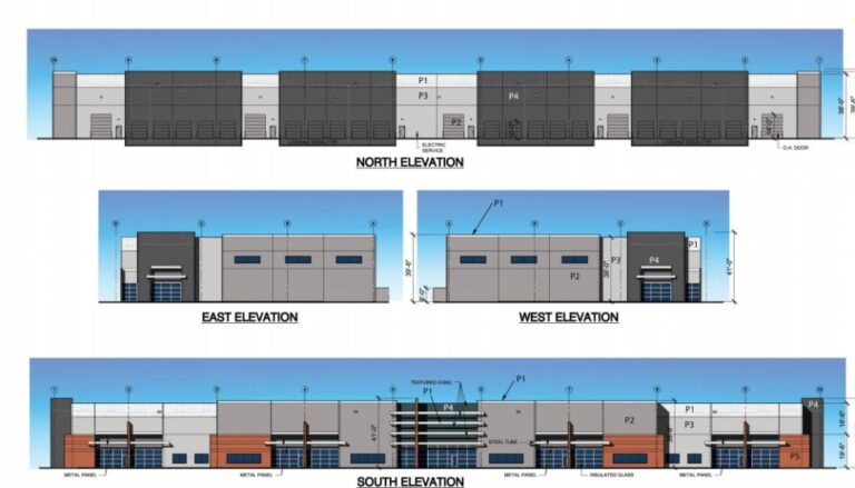 “Architectural façade elements such as glass entries with horizontal metal accents, metal soffit faces above glass and an articulated roof line,” the project documents state. “Walls will be concrete tilt panel construction with architectural scoring and contrasting colors. The buildings utilize a hybrid wood panelized roof with a reflective spray foam roof system.”