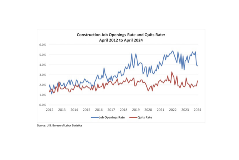 The construction industry had 338,000 job openings on the last day of April, according to an Associated Builders and Contractors analysis of data from the U.S. Bureau of Labor Statistics’ Job Openings and Labor Turnover Survey. JOLTS defines a job opening as any unfilled position for which an employer is actively recruiting. Industry job openings decreased by 8,000 last month and are down by 25,000 from the same time last year.