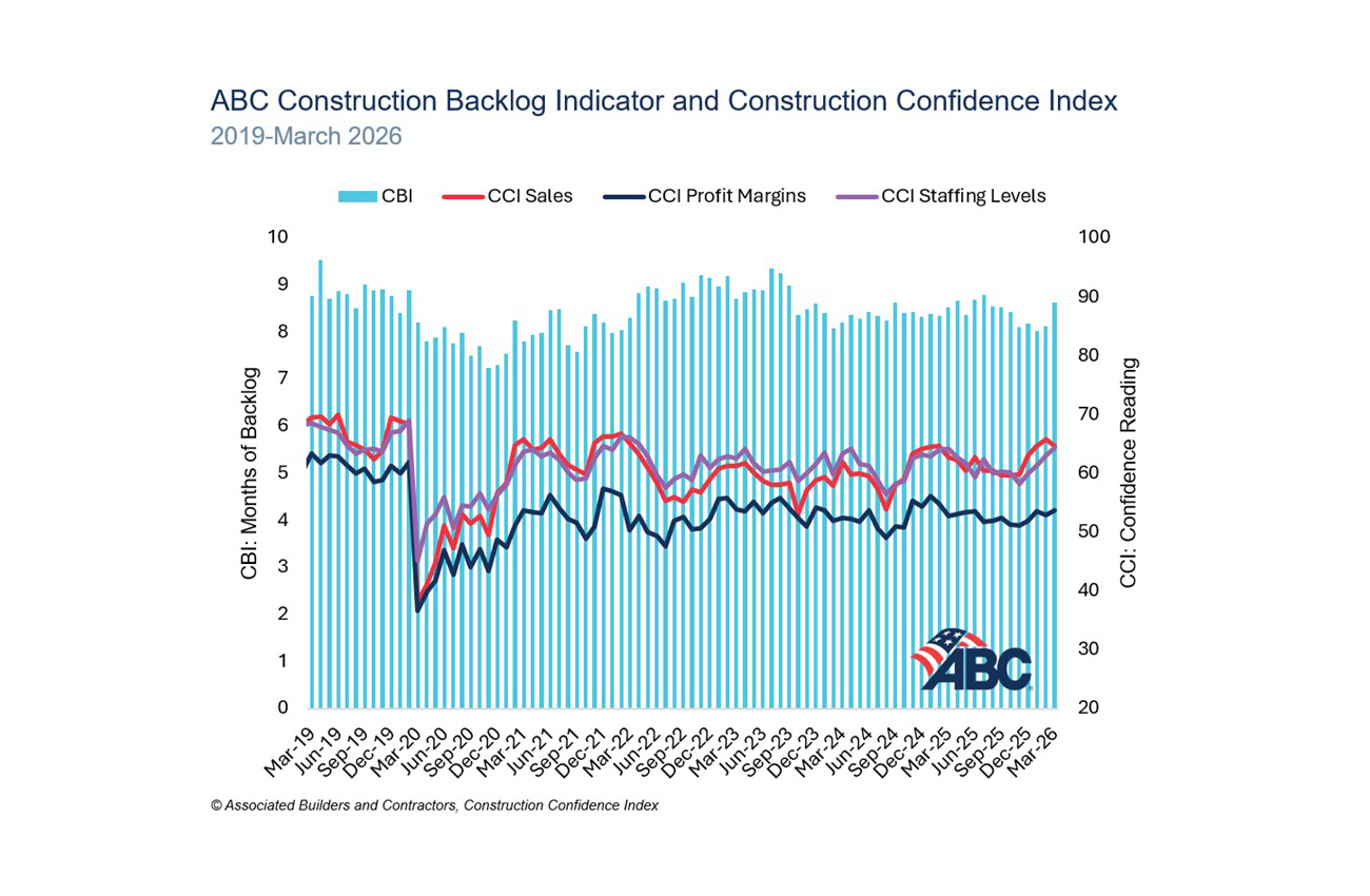 Associated Builders and Contractors reported its Construction Backlog Indicator rose to 8.6 months in March, according to an ABC member survey conducted March 23 to April 6. The reading is up 0.5 months from February and up 0.1 months from March 2025.