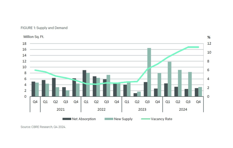 CBRE reported no new groundbreakings or deliveries for general office development in its Phoenix Office Market Q4 2024 report.