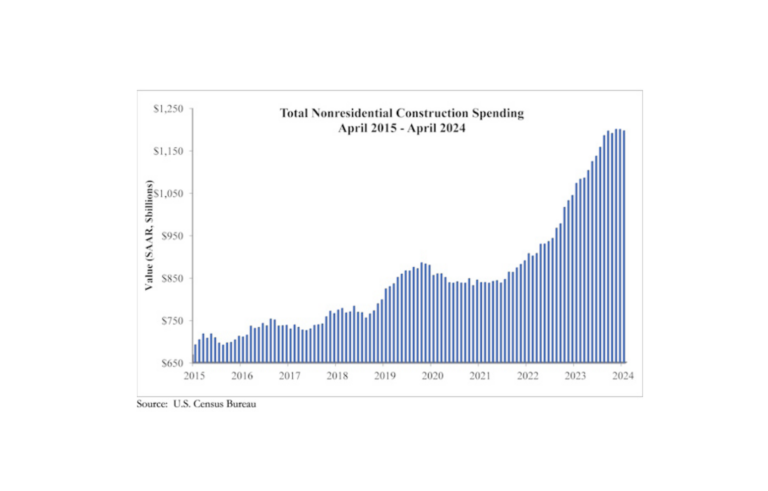 “Nonresidential construction spending fell for the second consecutive month in April but remains just 0.3% below the all-time high established in February,” said ABC Chief Economist Anirban Basu. “An unprecedented increase in manufacturing construction spending has pushed overall nonresidential activity 31.9% higher over the past two years. Ongoing investment in industrial facilities as well as significant infrastructure-related outlays will keep nonresidential spending elevated despite the current expectation that interest rates will stay higher for longer. This outlook is reflected in ABC’s Construction Confidence Index, which shows that a majority of contractors expect their sales to increase over the next two quarters.” (Source)