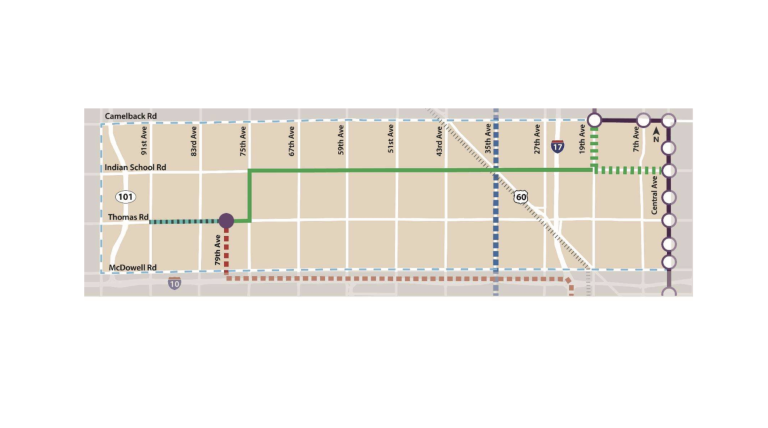 In approving the Indian School line, Council replaced a two-part plan that would have included a small section around the Capitol and a longer portion along Interstate 10. All the planned routes would have ended at Thomas Road and 79th Avenue.